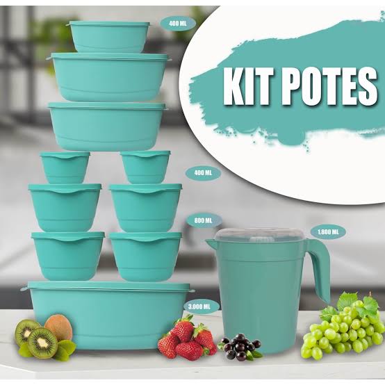 Kit 10 Potes mais Jarra 1.800 ml de Brinde, Potes + Jarra